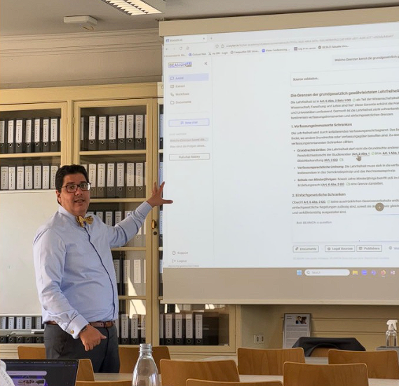 In fünf intensiven Einheiten haben Studierende im Sommersemester 2025 unter der Leitung von Prof. Dr. Emanuel V. Towfigh erstmalig die zentralen Grundlagen wissenschaftlichen Arbeitens in den Rechtswissenschaften erarbeitet. Die neukonzipierte Lehrveranstaltung deckte dabei ein breites Spektrum ab: von juristischen Methoden und Recherchetechniken bis hin zur Anfertigung eigener wissenschaftlicher Arbeiten. Ziel war es, den Studierenden nicht nur theoretisches Wissen zu vermitteln, sondern sie auch praktisch auf das eigenständige wissenschaftliche Arbeiten vorzubereiten.